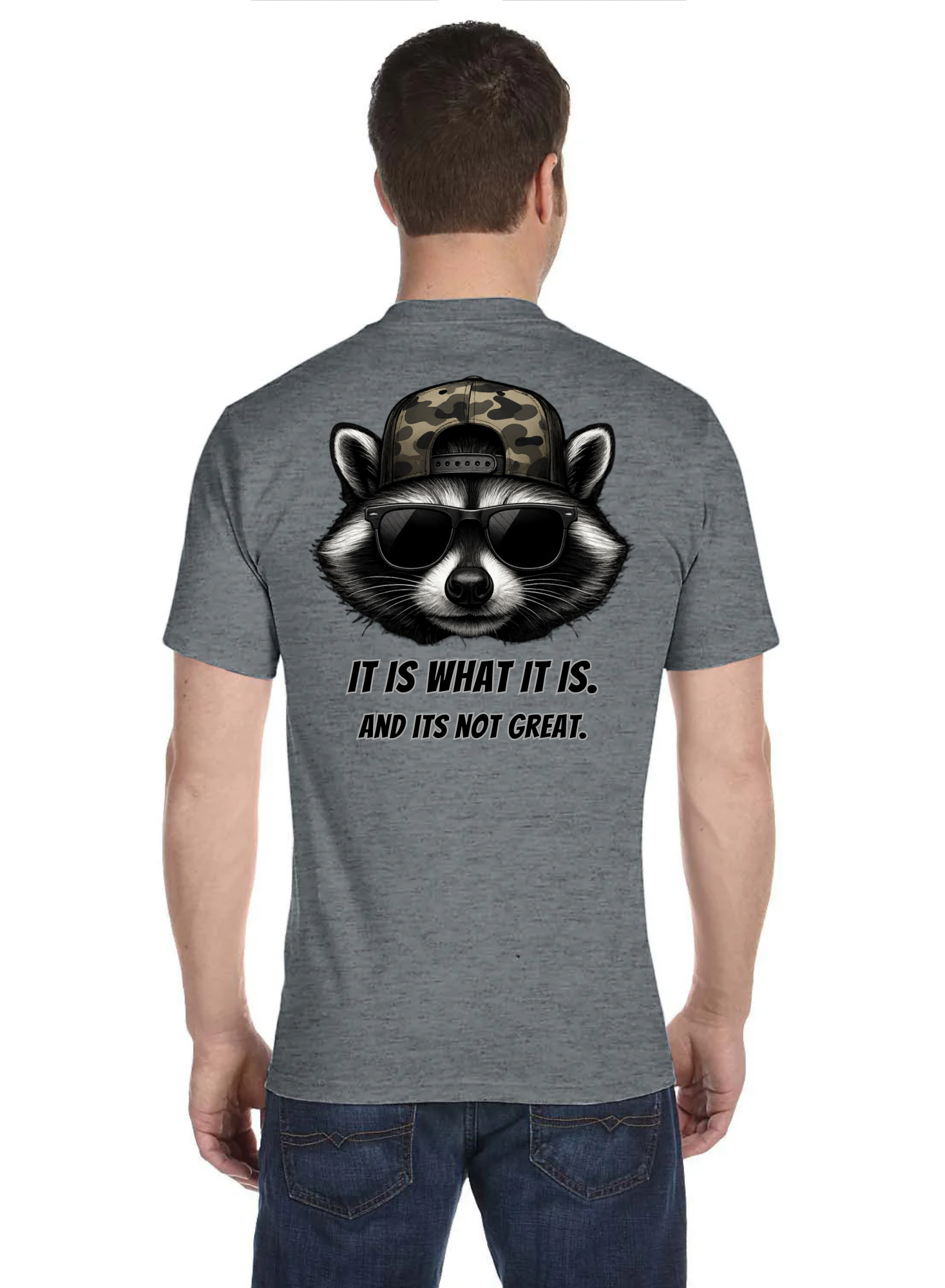 Featuring a too-cool-for-life raccoon in a camo snapback and shades, this bold design delivers the dry humor and brutal honesty we all relate to.