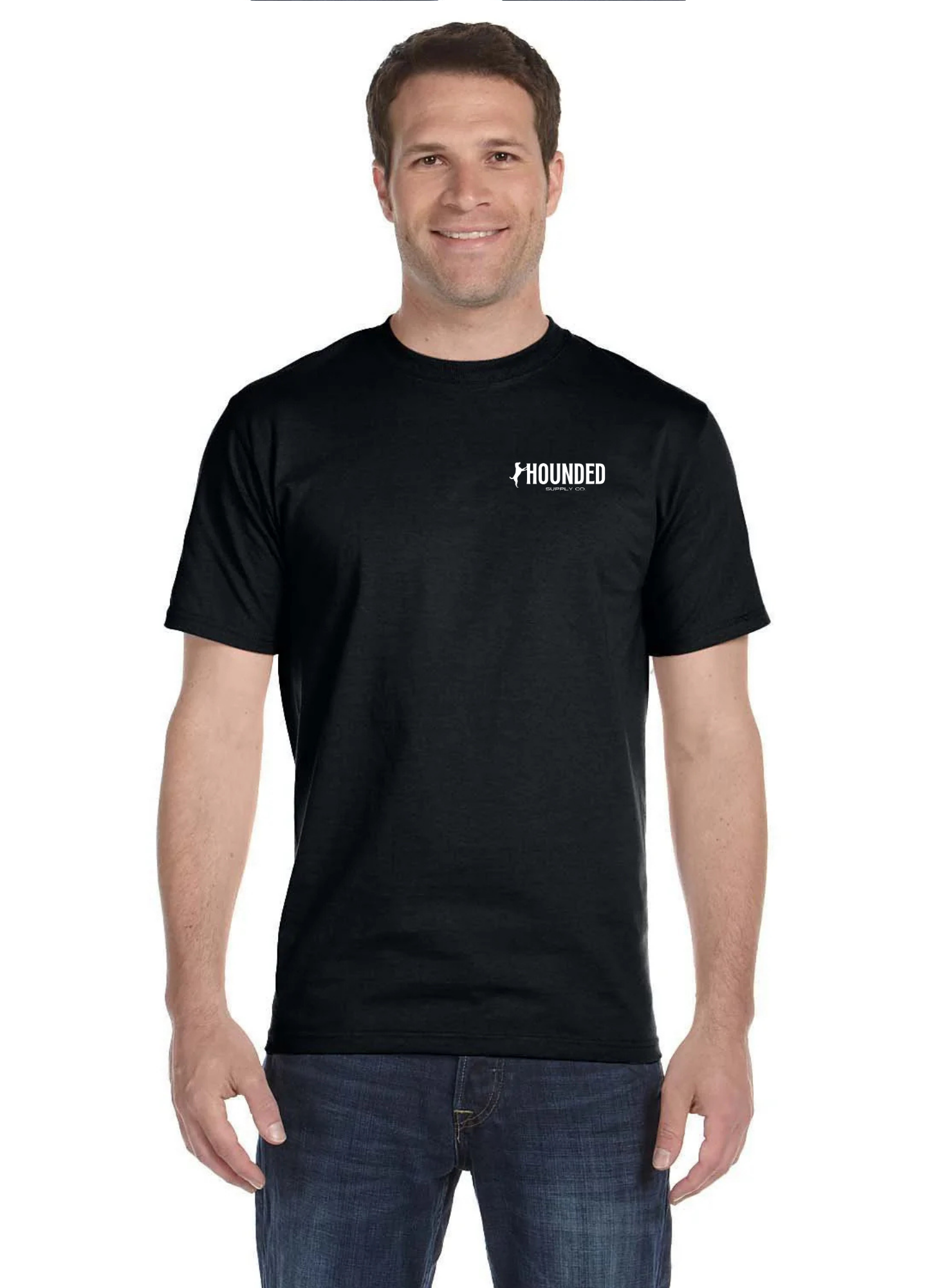 Where the pavement ends, the chase begins. This bold graphic tee features a determined hound under a glowing moon, ready to hit the trail, the golden vintage-style artwork pops with rugged detail — from the dirt path to the hound truck in the background.